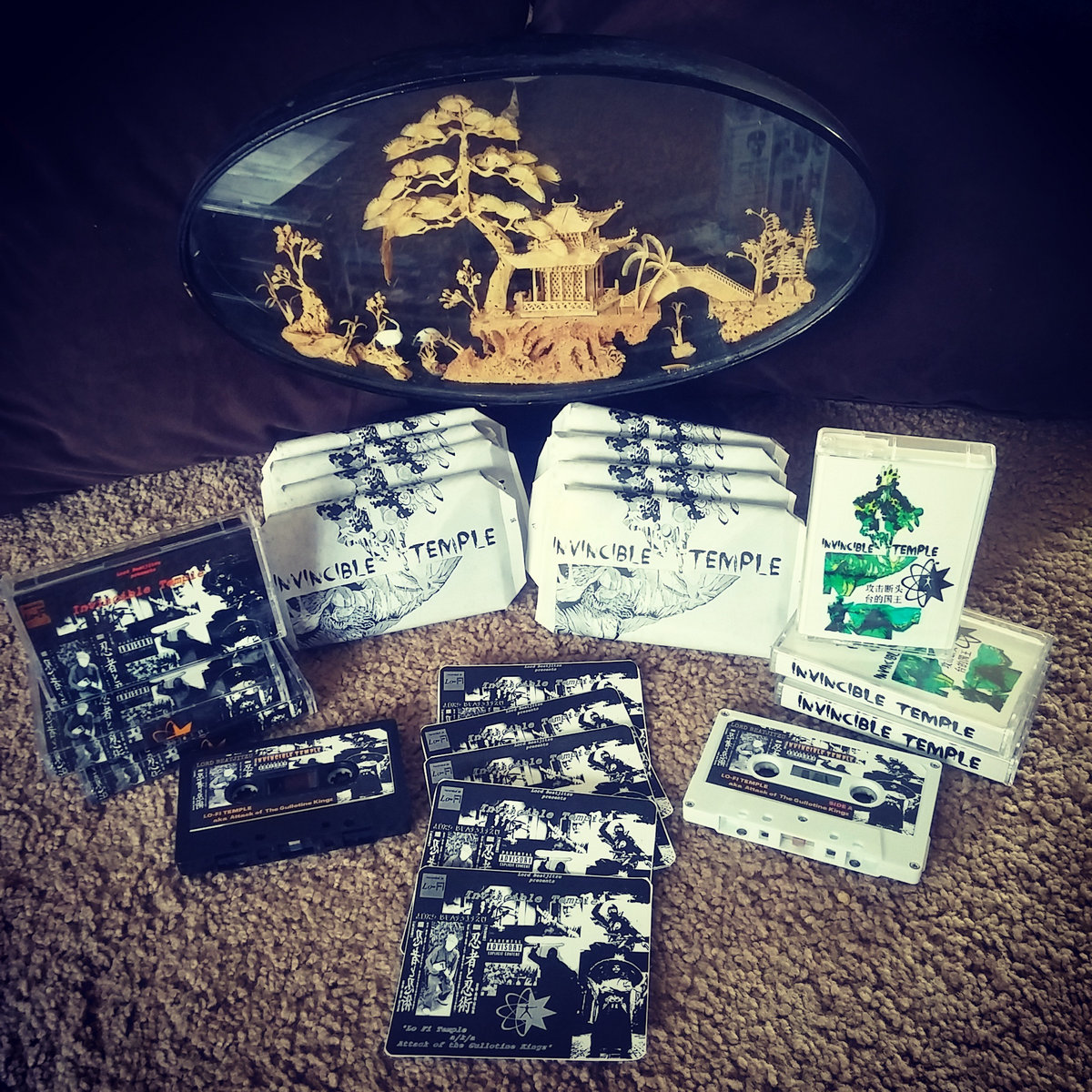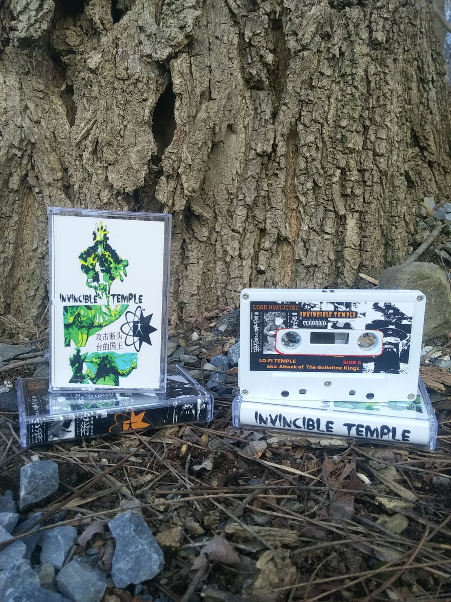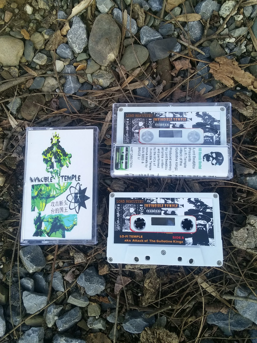120 M CASSETTE ONLY VERSION. of LO FI TEMPLE AKA ATTACK OF THE GUILLOTINE KINGS with variant art work and CASSETTE ONLY bonus beats by SUN SEED AND BRUCE LI